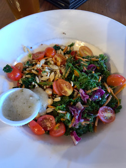 Our drive to the park's north entrance would take about 1.5 hours without stops; however, I have planned out three short detours in Montana along the way. The first is obviously Bozeman. Since it's also lunch time, I've researched a few local restaurants where we might be able to get a quick meal. We settle on Starky's, a New York style deli and American restaurant. The irony of flying out west to immediately go to a NY style deli is not lost on me, but I've heard their reuben is famous. My husband opts to be healthy and order the super greens salad with salmon which comes with blueberries, goat cheese, avocado, almonds, cucumber, and a honey black pepper vinaigrette. I do not stay quite so healthy, though, and decide I must try the famous reuben which comes with the usual corned beef, swiss cheese, sauerkraut, and russian dressing on grilled rye bread. I also add a side salad--that makes the meal healthy, right?